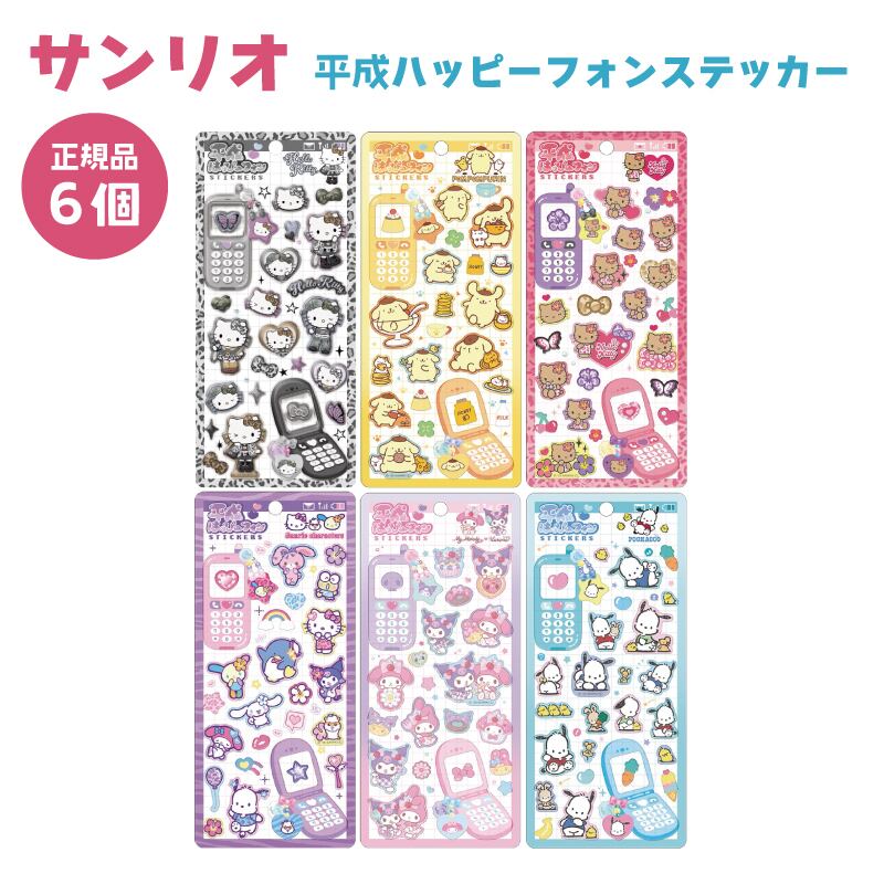 平成ハッピーフォンステッカー サンリオキャラクターズ ステッカー シール ポムポムプリン ハローキティ 日焼け グランジ ポチャッコ マイメロ クロミ 6個セット