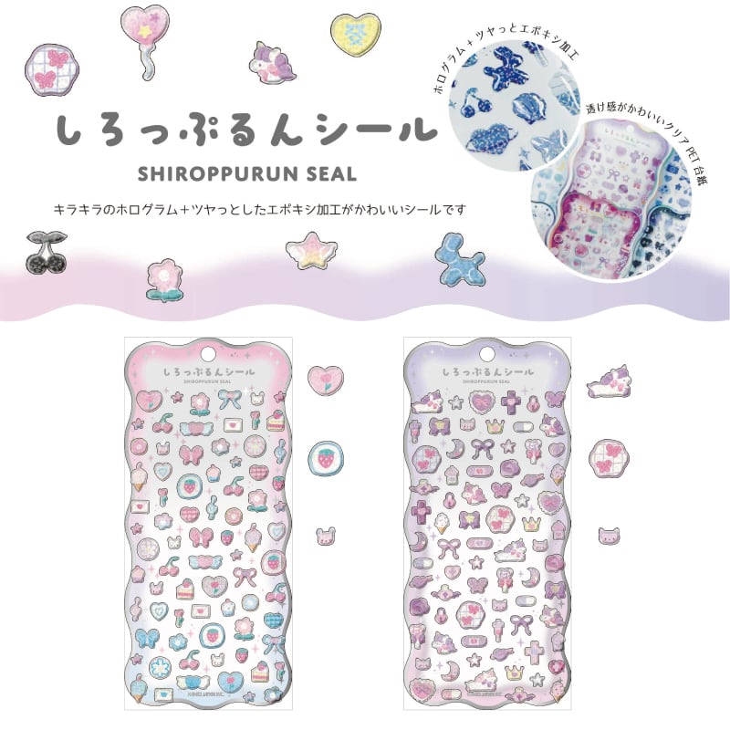 しろっぷるんシール ステッカー シール カラフル 可愛い シル活 交換 ぷっくり シロップ キラキラ ホログラム エポキシ カミオジャパン しろっぷるんシール 6個
